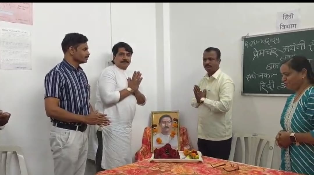 याच कार्यक्रमात मुन्शी प्रेमचंद यांची जयंतीही साजरी करण्यात आली. याप्रसंगी प्राचार्य डॉ. कृष्णा शहाणे यांनी साहित्यातील मुन्शी प्रेमचंद यांचे महत्व विशद करून ग्रंथालयात उपलब्ध असलेल्या विविध हिंदी चरित्रसाहित्य यांचा वाचन व अभ्यास करावा असे सांगितले.या कार्यक्रमाचे प्रस्ताविक हिंदी विभागप्रमुख डॉ. अजीनाथ नागरगोजे सर यांनी केले तसेच कार्यक्रमाचे सूत्रसंचालन डॉ. सीमा जाधव व आभार प्रदर्शन डॉ. संगीता देशमुख यांनी केले. याप्रसंगी विद्यार्थ्यांनी प्रेमचंद विषयी आपले मनोगत व्यक्त करून महाविद्यालयातील वर्षभरातील उपक्रम व अनुभव असे कथन केले.