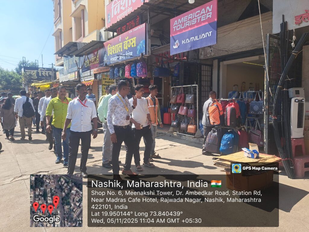 ०५ नोव्हेंबर रोजी आयुक्त खत्री मॅडम, उपआयुक्त अतिक्रमण नांदुरकर मॅडम यांच्या आदेशान्वये विभागीय अधिकारी डॉ. प्रज्ञा त्रिभुवन यांच्या मार्गदर्शनाखाली नाशिकरोड विभागातील गोसावी वाडी, मिना बाजार, छत्रपती शिवाजी महाराज पुतळा, अण्णा हजारे मार्ग, टिळकपथ, बिटको पॉईंट, मुक्तीधाम परिसर, गायकवाड मळा, रेजिमेंटल प्लाझा, नाशिकरोड रेल्वेस्टेशन येथे अतिक्रमण कर्मचारी अमित पवार, ठेकदारांचे कर्मचारी, NBS कर्मचारी यांच्या मार्फत कारवाई करण्यात आली